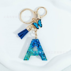 メーカー供給 グラデーションブルー 26文字アルファベットキーホルダー 蝶々タッセルキーホルダー レディースバッグチャーム