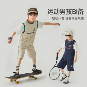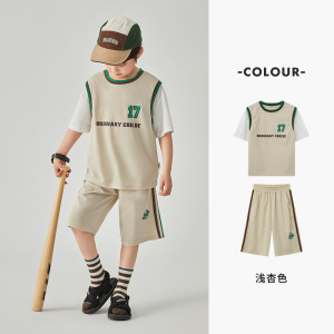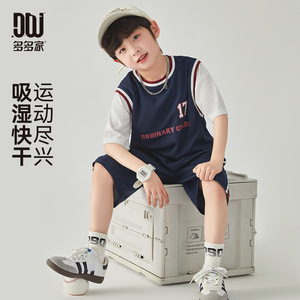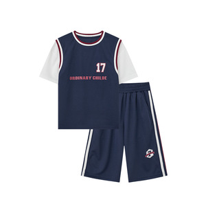Duojia 子供服男の子スーツスポーツスーツ夏子供速乾性半袖ショーツバスケットボールスーツ偽ツーピースセット