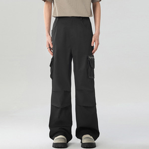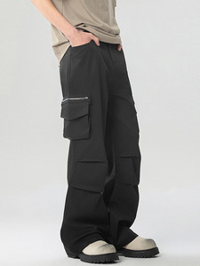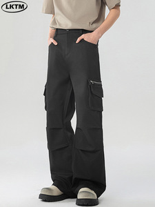 LKTM メンズアメリカンハイストリートジッパーポケット空挺部隊オーバーオールメンズルーズデザインエクストラロングカジュアルパンツ