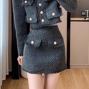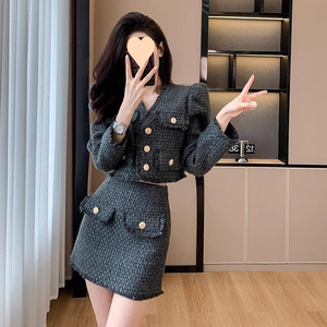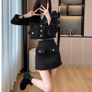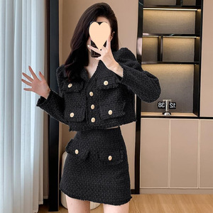 Xiaoxiangfeng 気質デザインツーピーススーツ女性のための 2025 秋と冬の新しいウールショートコートとスカートスーツ