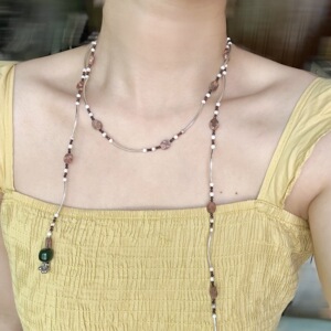 新しい中国風の積み重ね天然石ビーズネックレスニッチデザインハイエンド二層ショートネックレス中国風鎖骨チェーン