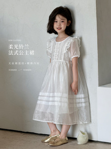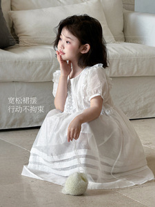 チュチュ象子供服女の子サマードレス 2025 新しい夏の白いスカート女の子ハイエンドプリンセスドレス
