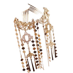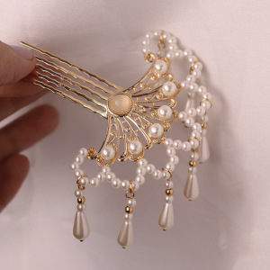 古代スタイルの明代唐時代のレトロなヘアアクセサリー漢服チャイナドレスヘアコーム多用途宮殿模造真珠アクセサリー古代衣装帽子