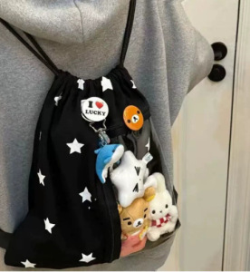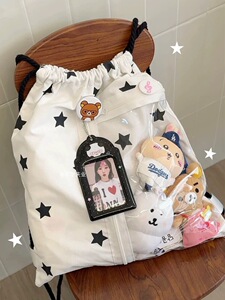 かわいいクリエイティブスタードローストリングバッグ大容量通勤学生スクールバッグシンプルカジュアルプリントオックスフォード布バッグ