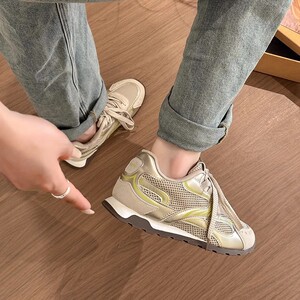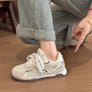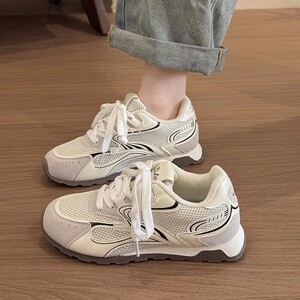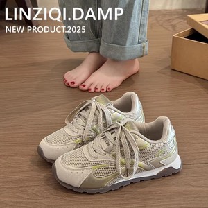 女性の靴 2025 新しい夏薄いフォレスト・ガンプ豆靴メッシュ通気性厚底スポーツカジュアルお父さん靴
