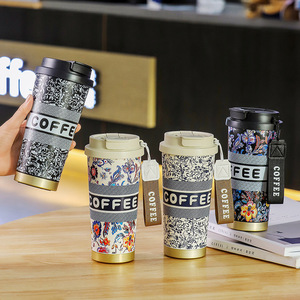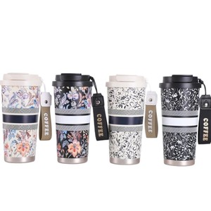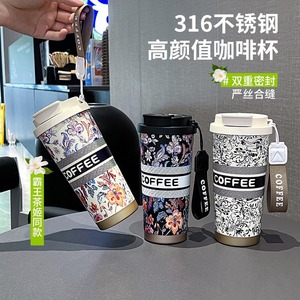 カスタマイズされたスズランコーヒーカップ、見栄えの良い316ステンレス鋼魔法瓶カップ、持ち運び用ロープ付き、屋外ポータブルストローカップ