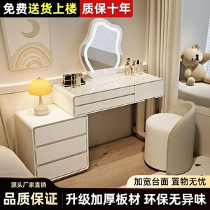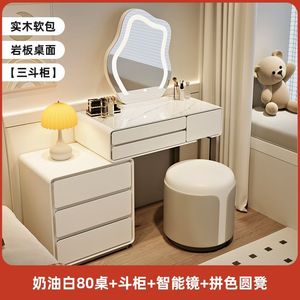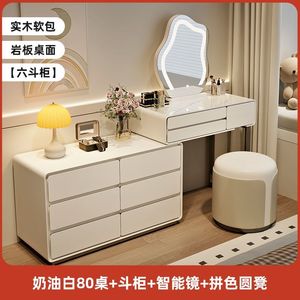 2025 クリームスタイルのスレート無垢材ドレッシングテーブルベッドサイドテーブル一体型インターネットセレブ伸縮式ドレッシングテーブル寝室モダンシンプル
