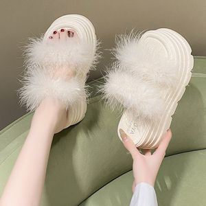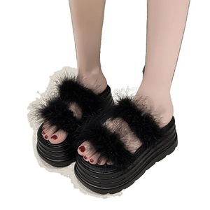 フェアリースタイルのカラフルな毛皮のようなスリッパ、女性用夏アウター 2025 新しいスタイル 8 厚底プラットフォームオープントゥスリッパ