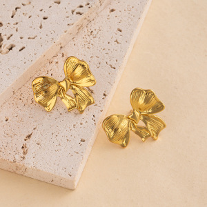 メーカー直送ステンレスイヤリング、幾何学的なラブリボンフラワーイヤリング、チタン鋼イヤリング、軽い高級感と高級感