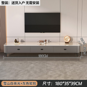 【工事不要】180雪山白岩板+グレーキャビネット黒飛行機脚テレビキャビネット