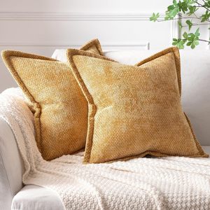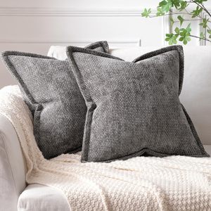 クロスボーダーアマゾンシンプルなクッションカバーリビングルームソファベッドルームシェニール小さなチェック柄織り枕カバープレスエッジ