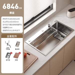 新款集渣水槽大单槽SUS304不锈钢厨房洗菜盆洗碗槽水池台上下加厚