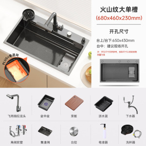 枪灰68X46【加大120%集渣】三档抽拉龙头+洗杯器+皂液器+台控器