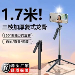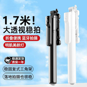 1.7mZ2 Bluetooth 自撮り棒、手ぶれ補正ハンドル付き、折りたたみ式ポータブルスタンド、一体型ハンドヘルド自撮り棒