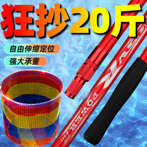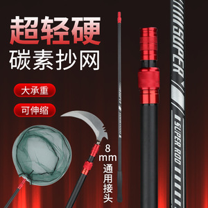 カーボン製大型魚網セット 超軽量超硬魚網竿セット 大型魚用伸縮式魚網竿