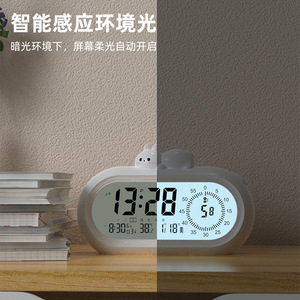 楕円形のシリコン人形タップライト、時刻、温度、曜日、バックライト、スヌーズ機能、同画面LCDディスプレイ、学生用目覚まし時計