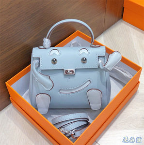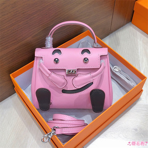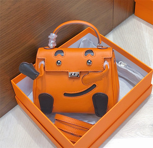 2025年新作レディースバッグ、スマイリーフェイスバッグ、高級一層牛革ミレニアムドールミニケリーバッグ、かわいいクロスボディバッグ