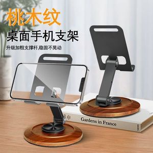 金属手机支架胡桃木旋转金属手机支架桌面折叠升降懒人追剧直播