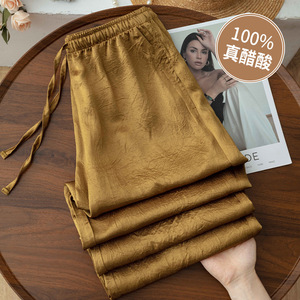 女性用100%酢酸抗シワサテンワイドレッグパンツ、軽い高級感、ハイエンドのレイジースタイル、オールドマネースタイルの質感のあるカジュアルパンツ