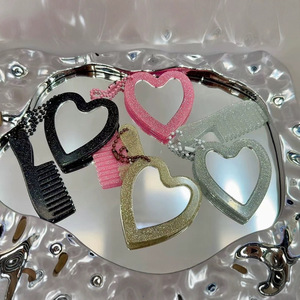 新しい小さな新鮮なインスタイルグリッタースパンコール愛化粧鏡キーホルダーペンダント diy バッグペンダントアクセサリー
