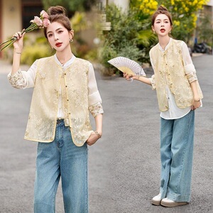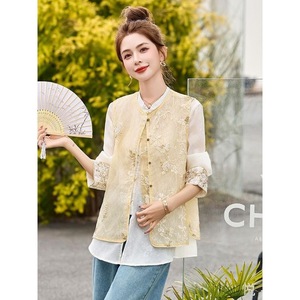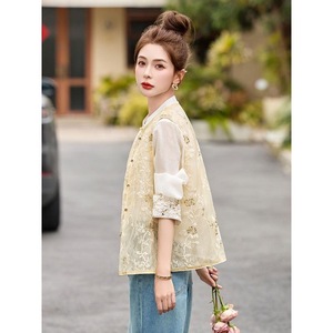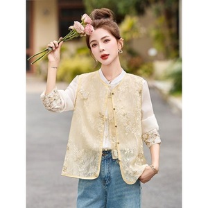 新しい新しい中国風の女性のファッショナブルな薄いアウターウェア多用途中国風のベストトップハイエンドの女性用ベスト