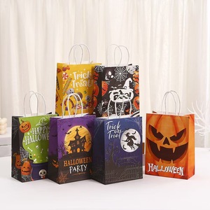 ランダムミックスカラーのハロウィンスタイル[携帯用紙袋]、クラフト紙、21*15*8cm。
