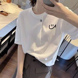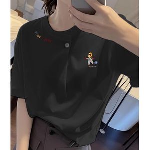 2025 新しいスタイルの女性用ピュアコットンショルダー T シャツ、半袖夏デザイン、ニッチ、ルーズ、ユニークで超見栄えの良い