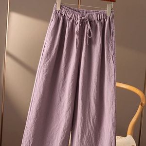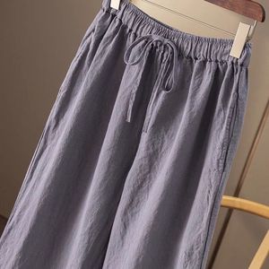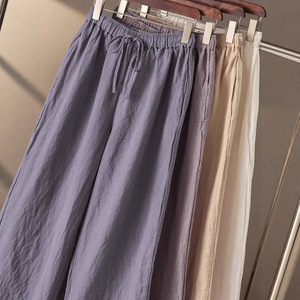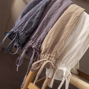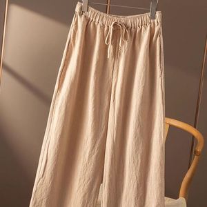 高品質100麻筋骨感伸縮性ウエスト巾着9点ストレートアーティスティックカジュアルワイドレッグパンツ