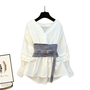 秋季温柔系穿搭女2025新款韩版百搭时尚束腰衬衫牛仔鱼尾裙三件套