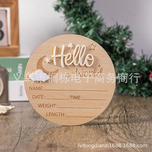 Hello World 出生お知らせボード ベビーフォトプロップス ウッドチップ ベビーマンス マイルストーン ウッドチップ
