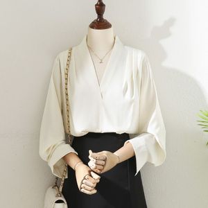 早春气质领百搭法式衬衫通勤职业缎面高级感杏色小众别致上衣