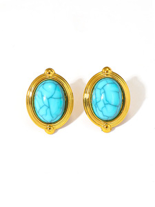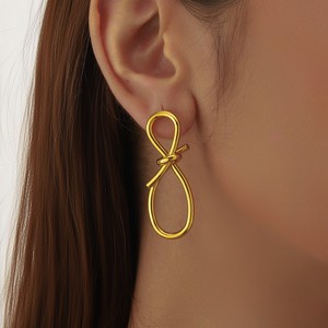 ヨーロッパとアメリカのクロスボーダーステンレススチールイヤリングライトラグジュアリーハイエンドイントレンド幾何学フラワーイヤリング女性用18Kゴールドイヤリング