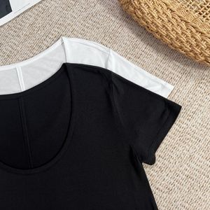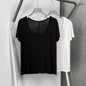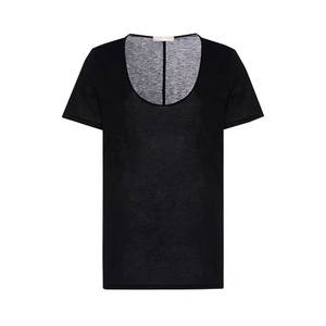 HOUSE25 Xia Xin 薄いバックミドルシームマルベリーシルクルーズカジュアルルーズラージUネックブラックホワイト半袖Tシャツ女性用