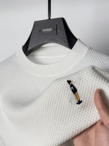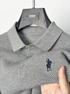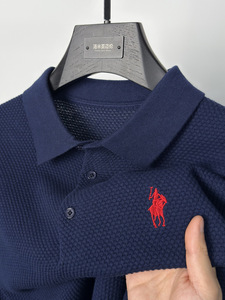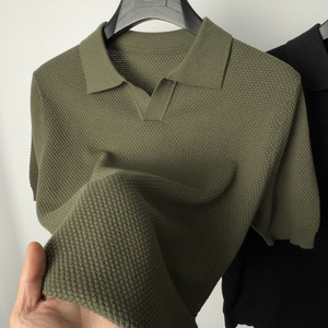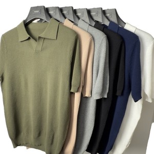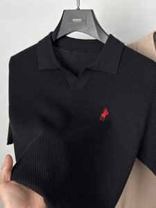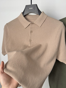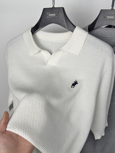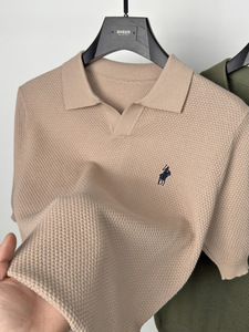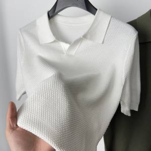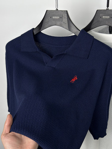 ハイエンドの純綿ニット半袖 Tシャツメンズカモメラペルポロシャツ通気性のある半袖パイナップル柄 Tシャツ夏