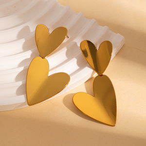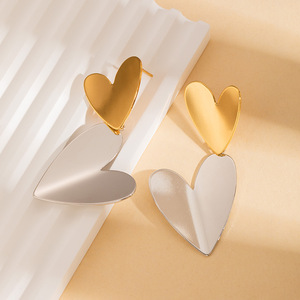 チタン鋼イヤリング 欧米風 大胆なツートンカラー ハートイヤリング 軽やかな高級感 ラウンドイヤリング 幾何学模様 ステンレスイヤリング