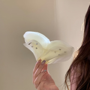 高品質!フレンチチュールバタフライフラッシュダイヤモンド大型グリッパー女性のヘアアクセサリーヘアピン気質ヘアシャーククリップヘッドドレス