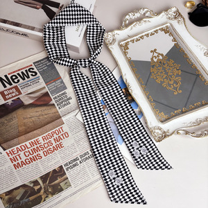 2025 フレンチレトロシルクスカーフチェック柄スリムシルクスカーフ女性のための春の新しいハイエンドファッション斜めリボン