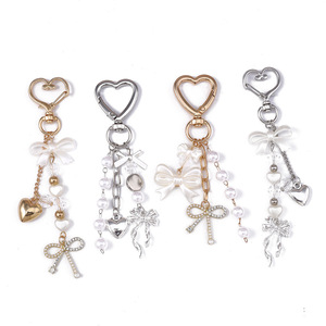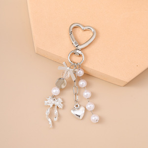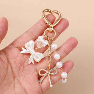 ヨーロッパとアメリカのクロスボーダージュエリー新しいファッション立体愛キーホルダー絶妙なパールリボンキーホルダーペンダント