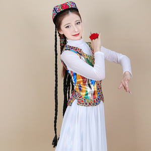 新疆ダンスパフォーマンス衣装エスニック特徴エドレードルショートベストウイグルスクエアダンススリムベスト