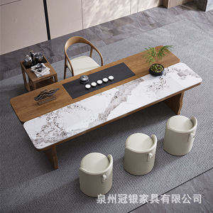 新中式实木大板泡茶桌椅组合现代简约家用岩板茶台办公室接待茶几