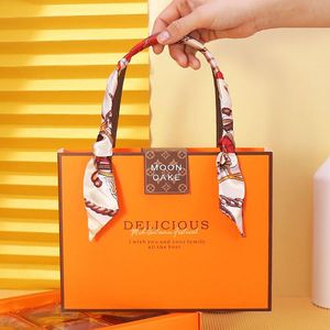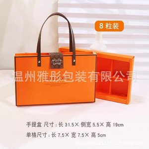 2025年新作オレンジ色月餅ギフトボックス、卵黄餅包装箱、6個入り/8個入り、中秋節用持ち運び可能な空箱、梱包箱