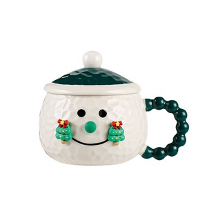 クロスボーダークリエイティブクリスマスギフト雪だるまマグ蓋付きオフィスホームセラミックウォーターカップ高価値クリスマスカップ