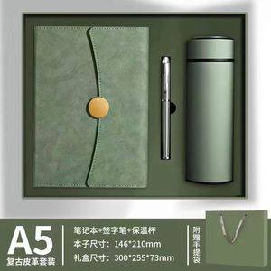 【ギフトボックス】A5-抹茶グリーン+魔法瓶カップ+ペン+Uディスク