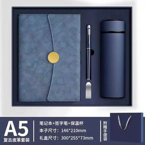 【ギフトボックス】A5-ブルー+魔法瓶カップ+ペン+Uディスク