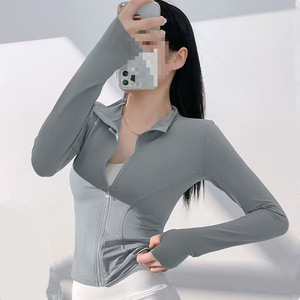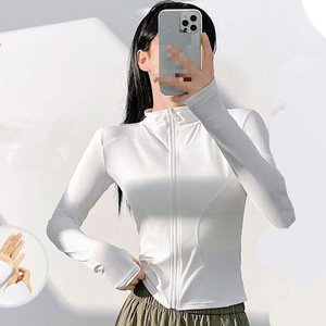 スタンドカラー日焼け止め服アイスシルク速乾性ショートヨガ服女性の夏薄い屋外サイクリングとランニング抗紫外線トップ
