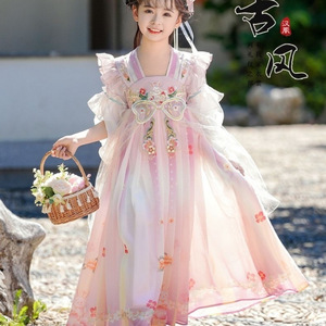 漢服女の子夏服古代スタイルプリンセスドレス 2025 新しい女の子夏の中国風古代衣装子供唐装ドレス