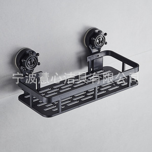 [吸盤モデル - ワイドエッジ] 黒単層長方形収納ラック