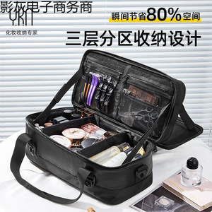 2025年新作女性用大容量化粧品バッグ、刺繍入りメイクアップアーティスト専用、外出用メイクアップポータブル