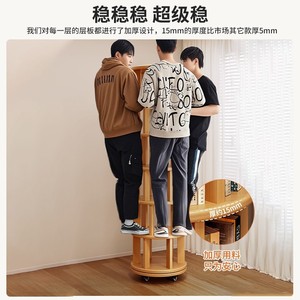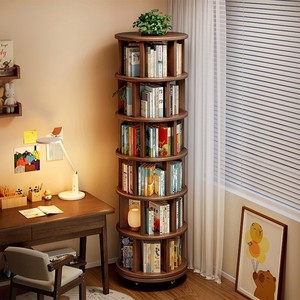 丸い無垢材の回転本棚、壁の隅の床から壁までの本棚、取り外し可能な子供用絵本棚、360度回転