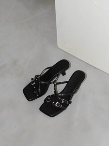 在庫あり、即発送可能〜女性用本革スティレットヒールスリッパ、夏用スクエアトゥハイヒール、万能ビーチウェア、クロスストラップサンダル